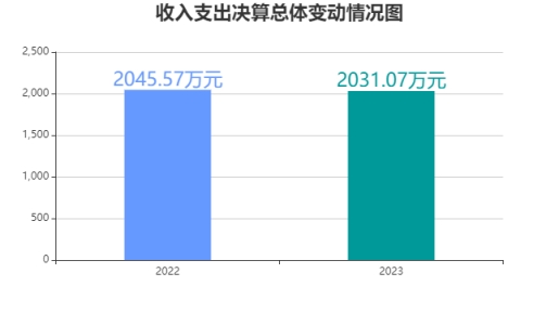 2023年度收入总计2,031.07万元(含使用非财政拨款结余、年初结转和结余)、支出总计2,031.07万元(含结余分配、年末结转和结余)。与2022年度相比,收、支总计各减少14.5万元,下降0.71%,主要原因坚持过紧日子,从严从紧把好支出关口,硬化预算约束,严格控制一般性支出。