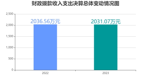 2023年度财政拨款收入总计2,031.07万元(含年初财政拨款结转和结余),支出总计2,031.07万元(含年末财政拨款结转和结余)。与2022年相比,财政拨款收、支总计各减少5.49万元,下降0.27%,主要原因坚持过紧日子,从严从紧把好支出关口,硬化预算约束,严格控制一般性支出。