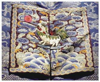 图为清徐定超御史蟒袍补子(上绣獬豸以示公正),温州博物馆藏。