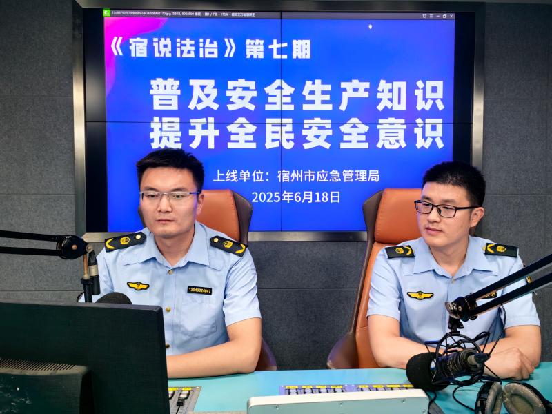 6月18日,《宿说法治》节目邀请了宿州市应急管理局综合科科长黄银行、科员陈龙,与大家就“普及安全生产知识 提升全民安全意识”这一主题进行交流。