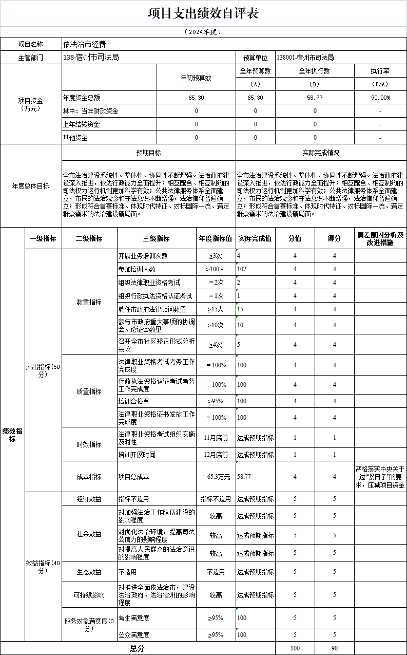 宿州市司法局2024年依法治市经费项目自评表