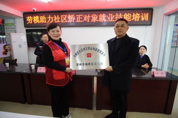 近日,埇桥区社区矫正职业技能培训基地在宿州市月儿湾职业技能培训学校挂牌。