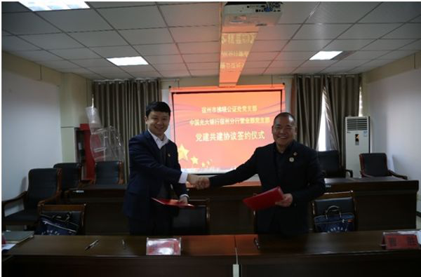 此次活动通过参观拂晓公证处党建教育展馆、召开座谈会以及党建共建签约等方式,搭建起聚势谋远、合作共赢的桥梁,通过“党建联盟”引领发展,强化了“公证+金融”的合作交流,更好地发挥了公证的职能作用。