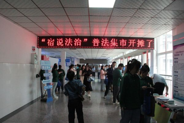 启动仪式后,参加活动的领导、嘉宾和学生还参观了“宿说法治”普法集市展区。市委政法委、市委保密委、市中院、市检察院、市公安局、市司法局、市税务局、市妇联、市红十字会等普法责任单位通过摆放展板、发放宣传资料、现场讲解等方式,开展法治文化基层行普法宣传和民法典主题宣传,教育引导青年学生不断增强法律意识,弘扬法治精神,做尊法学法守法用法的时代青年。为进一步宣传普及民法典知识,活动还设置了趣味十足的“法治大转盘”环节,同学们踊跃参与,积极作答,在游戏中学习法律知识。活动最后,青年普法志愿者们还在签名墙上进行了签名。