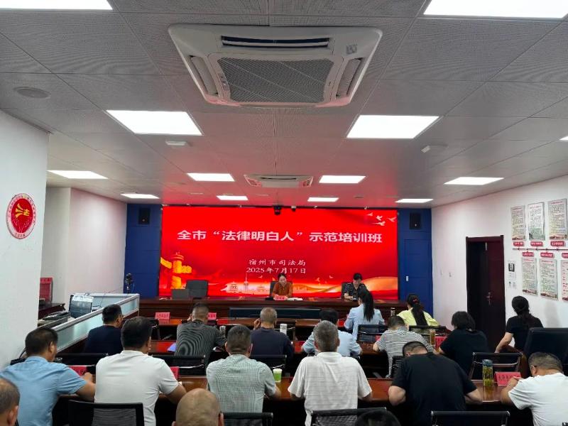 7月17日,宿州市司法局采取视频的方式举办“法律明白人”示范培训班,主会场设在市司法局,各县区司法局设分会场。市、县区普法依法治理部门人员、各乡镇司法所长、“法律明白人”代表共300余人参加培训。
