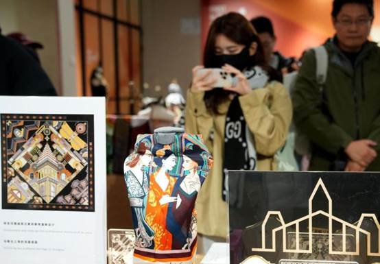 3月20日,人们在北京王府井工艺美术大厦内观看非遗文创产品展示。近日,文化和旅游部正式发布了新一批国家级旅游休闲街区,北京市王府井商业街区入选。(新华社记者 李欣 摄)