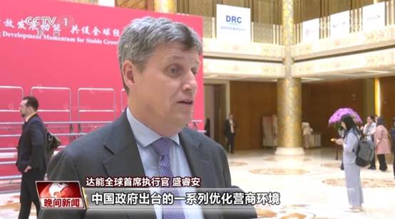 达能全球首席执行官 盛睿安:中国政府出台的一系列优化营商环境、鼓励外资发展等政策,帮助包括我们在内的很多企业将创新成果加速落地,实现可持续的增长。我相信中国将继续实现增长,继续带动共同繁荣。