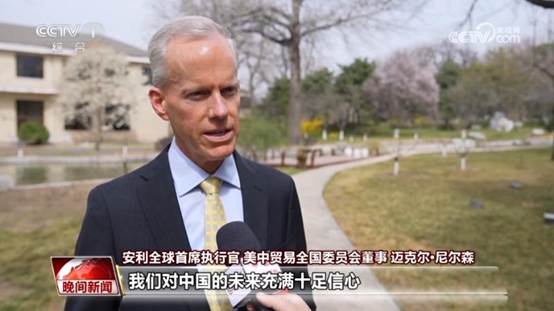 安利全球首席执行官、美中贸易全国委员会董事 迈克尔·尼尔森:中国营造了极佳的营商环境,我们对中国的未来充满十足信心。中国是我们最大的市场,我们在中国市场已经启动为期五年的投资计划,总额达到20亿元。