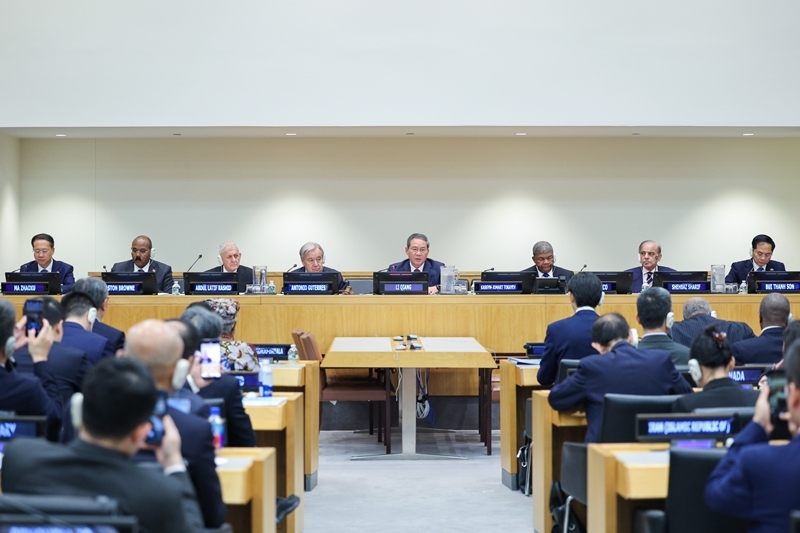 当地时间9月23日,国务院总理李强在纽约联合国总部出席由中方主办的全球发展倡议高级别会议并致辞。新华社记者 刘彬 摄