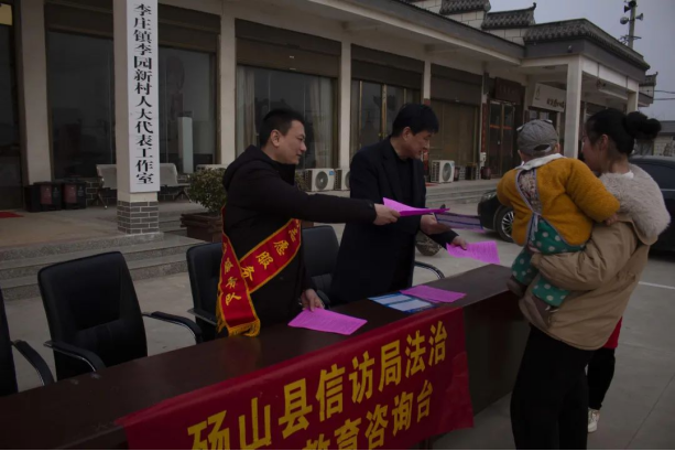 为进一步增强群众法治观念和依法、逐级、有序表达信访诉求的意识,县信访局普法志愿者在李庄镇李园新村开展《信访工作条例》宣传活动。