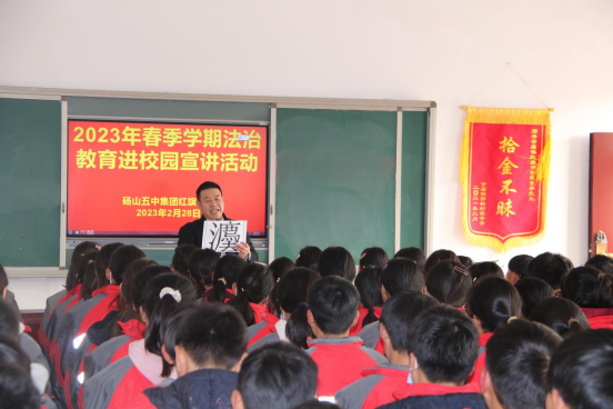 为增强青少年学生的法治意识,持续营造尊法、学法、守法、用法的校园环境,2月28日,县司法局组织普法志愿者到五中教育集团红旗校区开展“送法进校园”活动。