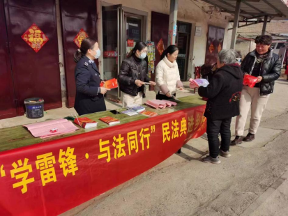 高铁新区普法志愿者在薛口村农贸集市开展“学雷锋·与法同行”民法典进乡村普法宣传活动。