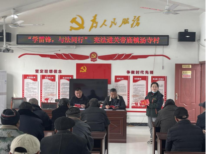 关帝庙司法所普法志愿者在汤寺村开展“学雷锋▪与法同行”宪法进乡村活动。