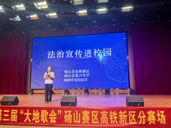 为进一步提升中学生法治意识和防诈骗能力,近日,砀山县高铁新区司法站借助砀山县第六中学“大地歌会”分赛活动契机,将法治宣传与校园文化活动深度融合,开展了一场生动的“法治宣传进校园·反诈骗”主题宣传活动,切实筑牢校园安全防线。