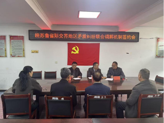 为有效落实《关于印发<关于建立苏皖鲁豫省际交界地区矛盾纠纷调解协作机制的实施意见>的通知》(徐司[2025]18号)要求,妥善化解苏鲁皖三省交界地区矛盾纠纷,结合三省交界独特地理位置,安徽省砀山县司法局联合江苏省丰县司法局、山东省单县司法局协商在相邻三镇率先建立“三省井”联合调解机制。安徽省砀山县司法局周寨司法所、江苏省丰县王沟司法所、山东省单县朱集司法所于10月29日正式签订《苏皖鲁省际交界地区矛盾纠纷联合调解机制协议书》,其主要内容包括:一是开展联排联调专项工作。重大节假日、敏感时期指导边界接壤村(居)开展涉跨界矛盾纠纷排查化解专项活动,每年不少于2次;二是组织矛盾纠纷调解会商研判。三地司法所轮流组织召开协作工作联席会,分析研判矛盾趋向,协商解决难点问题,分享典型案例和经验做法等;三是联合提升风险隐患应急处置能力。三地司法所联合出台处置针对边界地区重大突发事件的工作预案,完善矛盾纠纷联调工作机制,提高干预易激化民间纠纷的实战能力;四是及时加强信息互通共享。建立重大跨界矛盾风险隐患第一时间相互通报渠道,实现矛盾风险快速研判处置。建立边界地区联合调解组织、调解员名册及司法所工作人员通讯录,畅通调解申请渠道和协作开展。