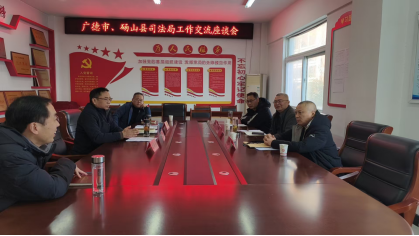 12月24日,广德市司法局党组成员、副局长杨勇一行三人到砀山县司法局召开司法行政工作交流座谈会。砀山县司法局党组书记、局长王佩及相关负责同志参与座谈。