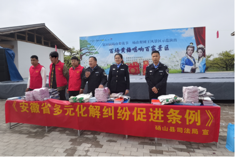 4月10日,砀山县司法局普法志愿者到良梨镇梨树王景区“百家黄梅唱响百家景区”活动现场,为群众宣传普及人民调解领域“一法两条例”,以法治力量护航基层社会治理。