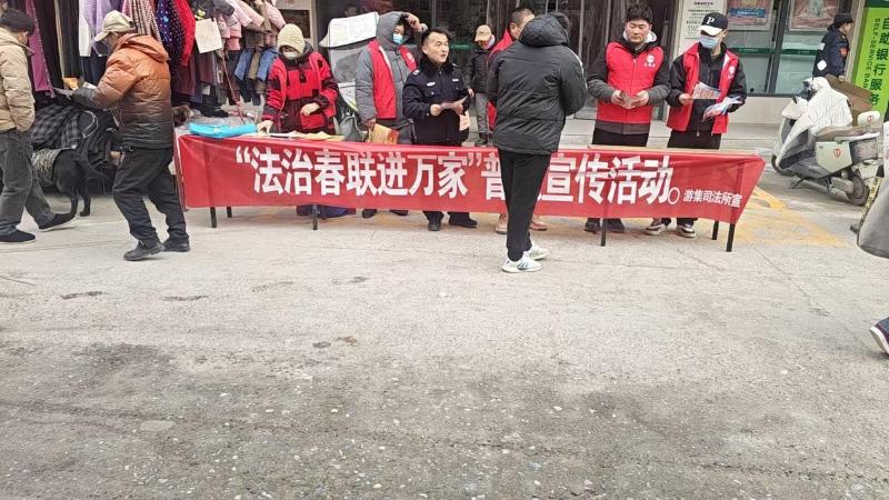 2月6日,灵璧县司法局游集司法所组织司法所干警和普法志愿者们深入辖区街道市集,开展“法治春联进万家”系列普法宣传活动,以传统民俗为载体,将法治元素融入新春祝福,为群众送上一份别具“法味”的新春礼物。
