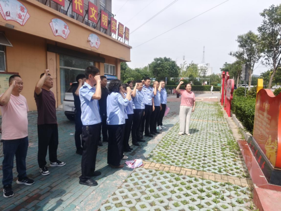 活动中,萧县社区矫正局党员干警向城东社区工作人员发放了社区矫正法、人民调解法和民法典等实用法律宣传资料,为基层治理注入法治动能。随后,干警们围绕社区矫正工作的意义、流程及民法典中与居民生活息息相关的条款,进行了生动细致的解读,现场解答疑问,有效提升了社区工作者的法律素养与履职能力,也让社区工作人员深刻认识到社区矫正对于帮助矫正对象顺利回归社会、维护社会和谐稳定的重要作用。活动尾声,社区矫正局全体党员面对鲜红党旗,与社区工作人员一同庄严举起右拳,铿锵有力的入党誓词响彻现场,再次点燃了为人民服务的炽热情怀与法治信仰。