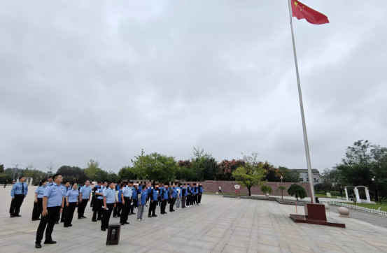 在红色教育基地的广场上,全体人员肃立,面向国旗高唱《中华人民共和国国歌》。激昂的旋律回荡在现场,每个人都神情庄重,心中的民族自豪感和使命感愈发强烈。