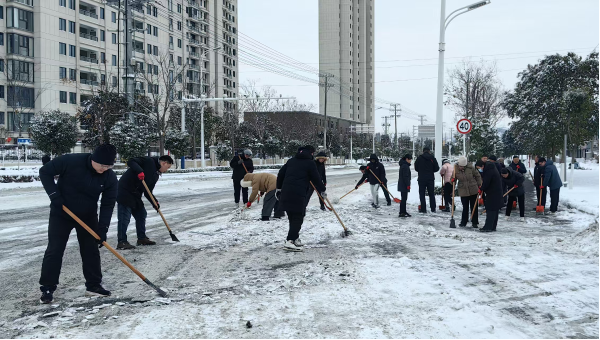 清晨时分,司法局工作人员顶着寒风,手持铁锹、扫帚等工具,在责任路段热火朝天地清理起来。班子成员与全体干警并肩作战,挥锹破冰,扫除积雪。尽管天气寒冷,但大家热情高涨,干劲十足,忙碌的身影在皑皑白雪中构成了一道温暖而亮丽的风景线。经过数小时的连续奋战,责任路段的主要通行区域积雪积冰被基本清除,恢复了安全畅通的通行条件。