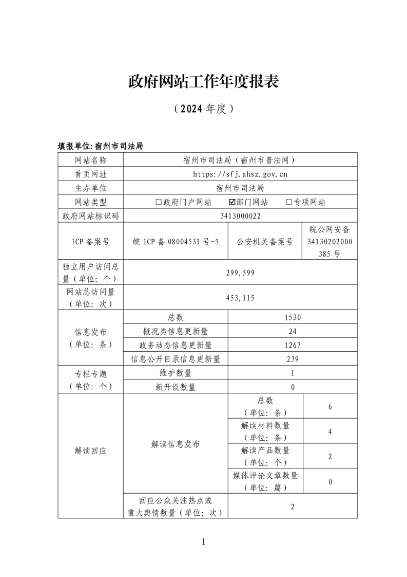 宿州市司法局(宿州市普法网)2024年度政府网站工作报表.doc